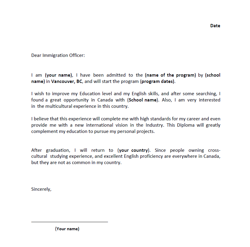 Se trata de una carta donde expliques la razón de estudiar en Canadá, cuáles son tus planes al terminar tus estudios (por ejemplo, regresar a tu país de origen y poner en practica lo que aprendiste).